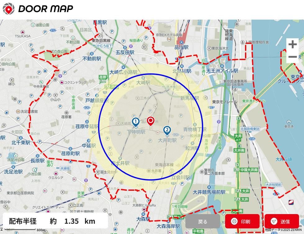 指定した範囲が地図上に表示され、配布可能エリアが視覚的にチェックできます。