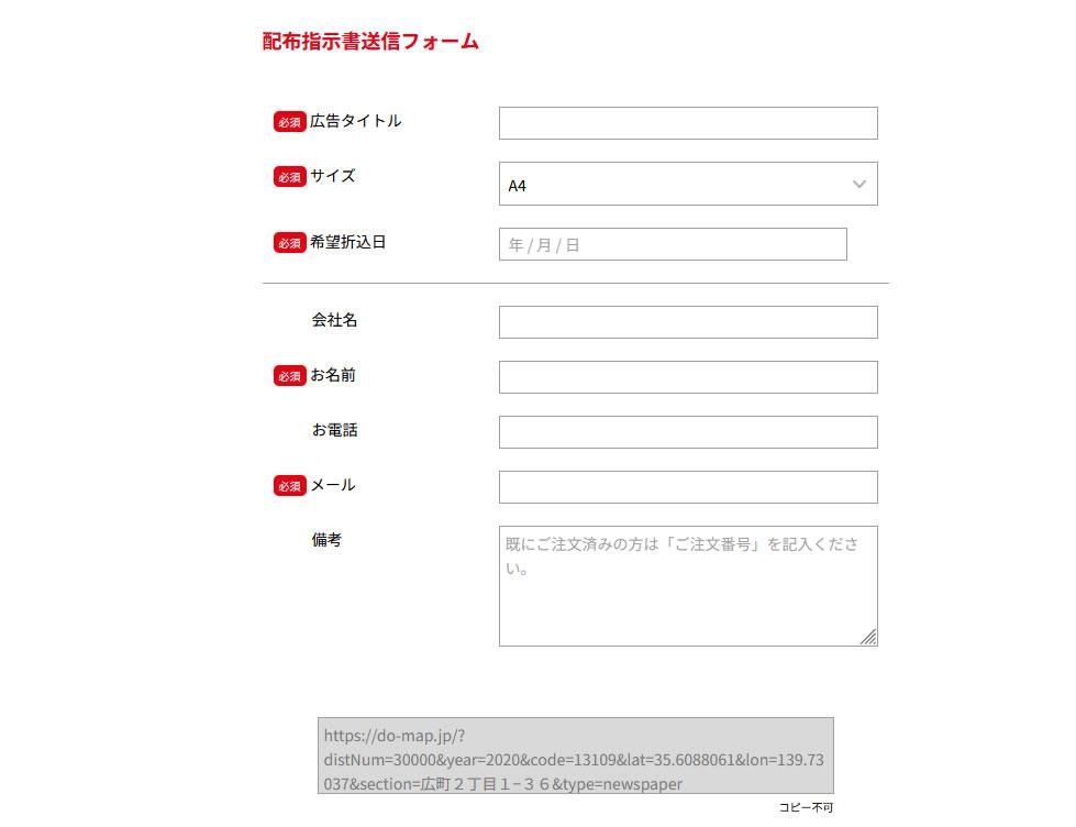 配布指示書送信フォームより、当社に配布エリア詳細情報を送ることができます。